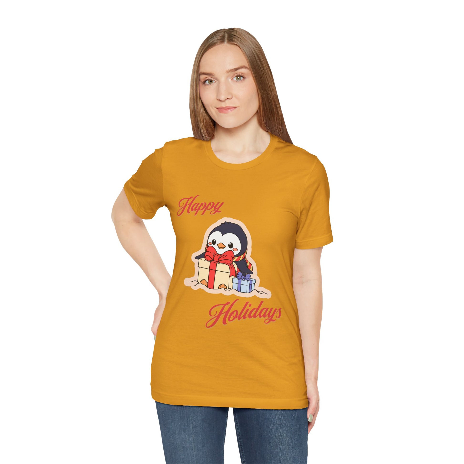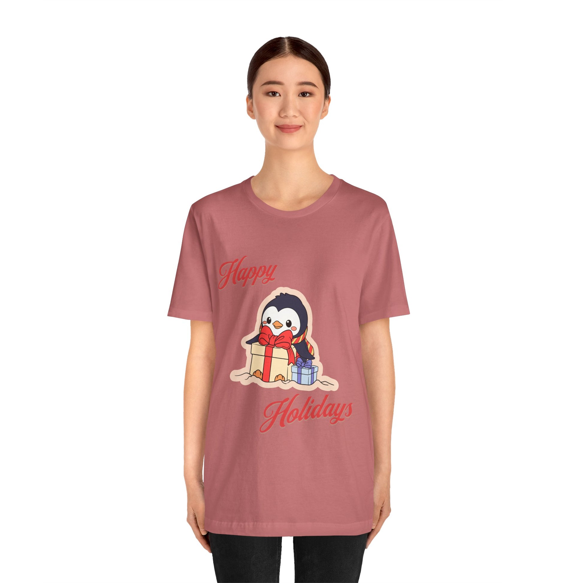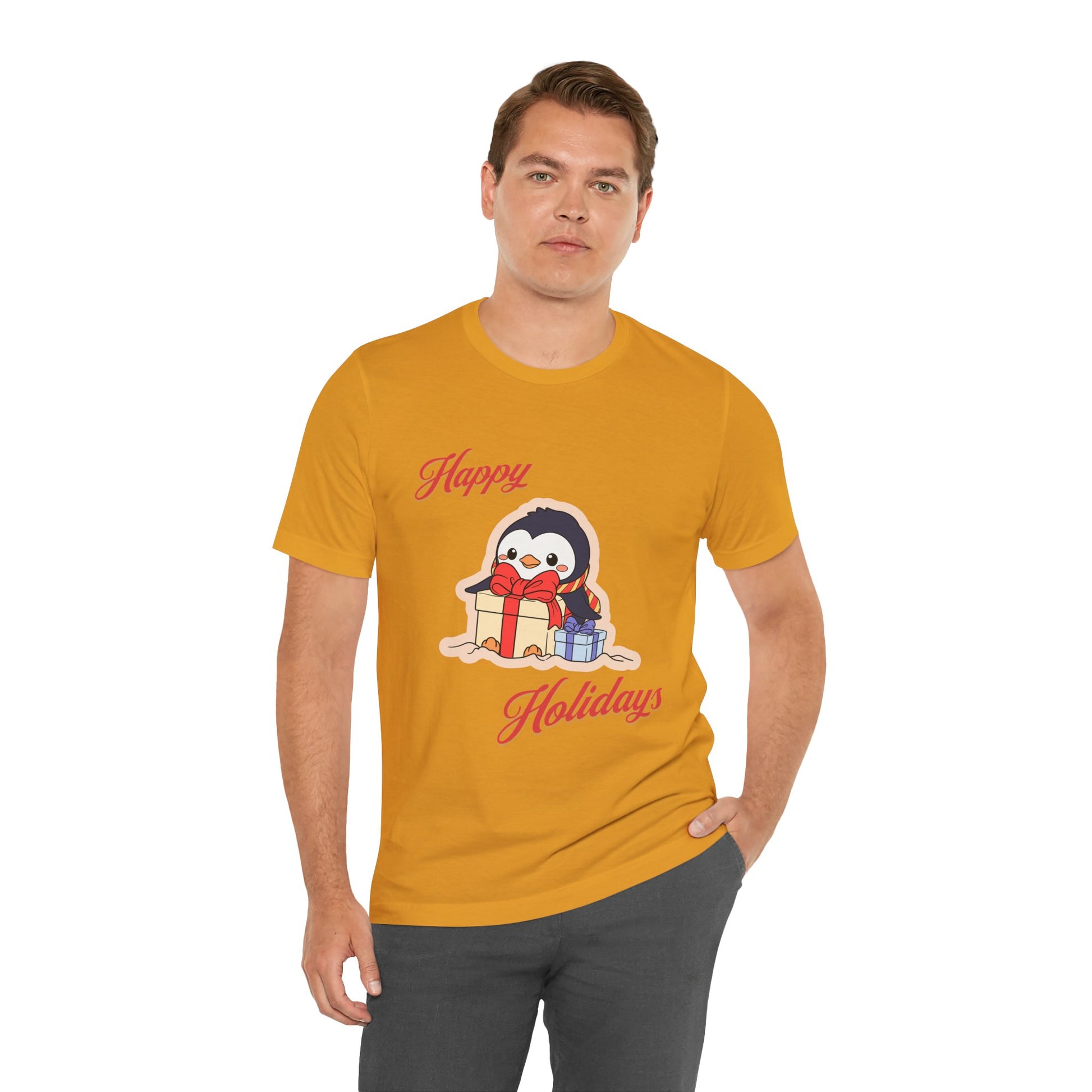 This Christmas-themed T-Shirt is perfect for spreading holiday cheer. Made with 100% Airlume combed and ring-spun cotton, it is lightweight and breathable, suitable for active and leisure wear. The retail fit and crew neckline add a classic touch that can be dressed up or down. Ideal for adults during the holiday season.